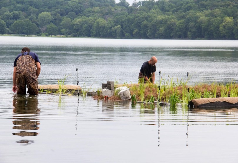 10-Getting started constructing wetland September 19, 2017 1637 × 1125 10-Getting started constructing wetland Constructing the floating wetland! Units are assembled near the shore, to be later brought to the target location., photo by State Parks.