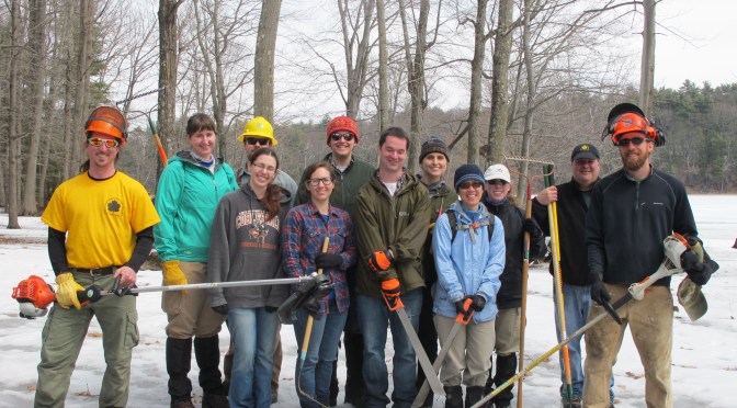 Evicting invasive species from our parks is a tough job. Clearing Phragmites from around the rim of Moreau Lake in Moreau Lake State Park, for example, takes a large team of environmental staff and Student Conservation Association Interns an entire day, as we found out in early April.