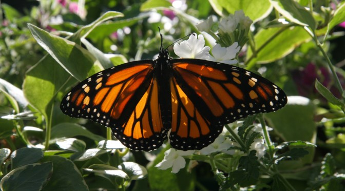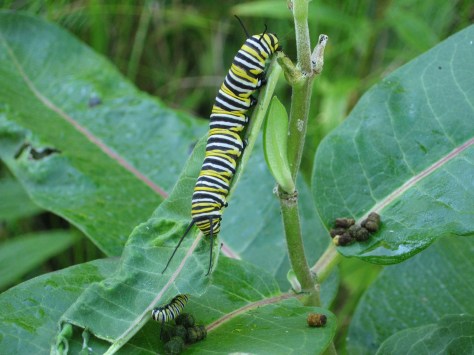 This bold orange beauty, shown in the featured image above, will feed on a number of different flowers and even drink the juice from overripe fruit, but Monarch caterpillars rely on only milkweed for their food. Milkweed is poisonous to many different creatures, but monarch larvae are able to tolerate the poison and store it in their body, making the caterpillars, and the adult butterflies, toxic to would-be predators. The bold colors are the butterflies’ way of saying “Caution!”