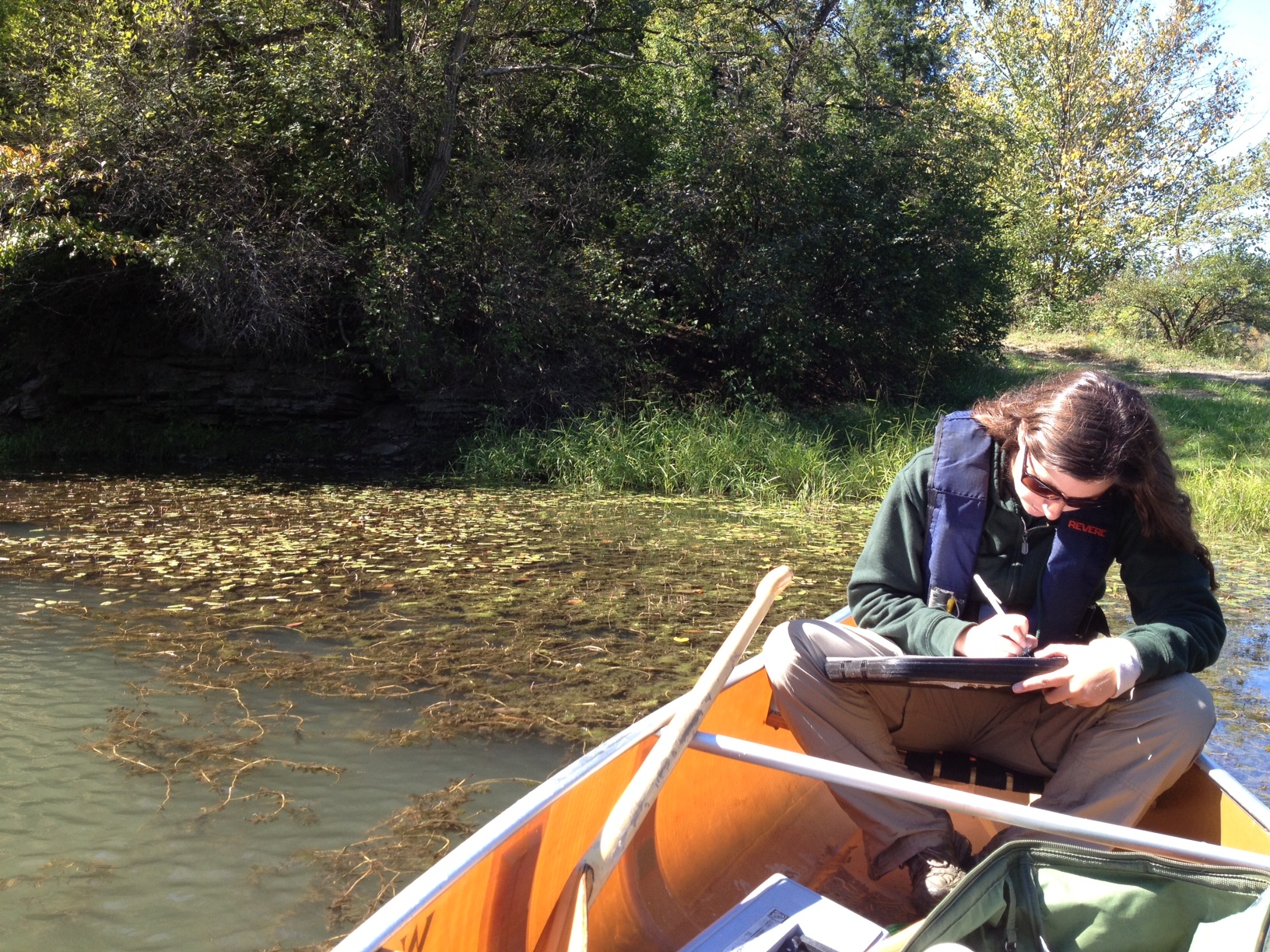2012 09 25_GCI_Lauren taking notes FL Trip May 26, 2015 1632 × 1224 Staff Spotlight: Water Quality Unit Lauren Townley records water quality data in the Finger Lakes region.