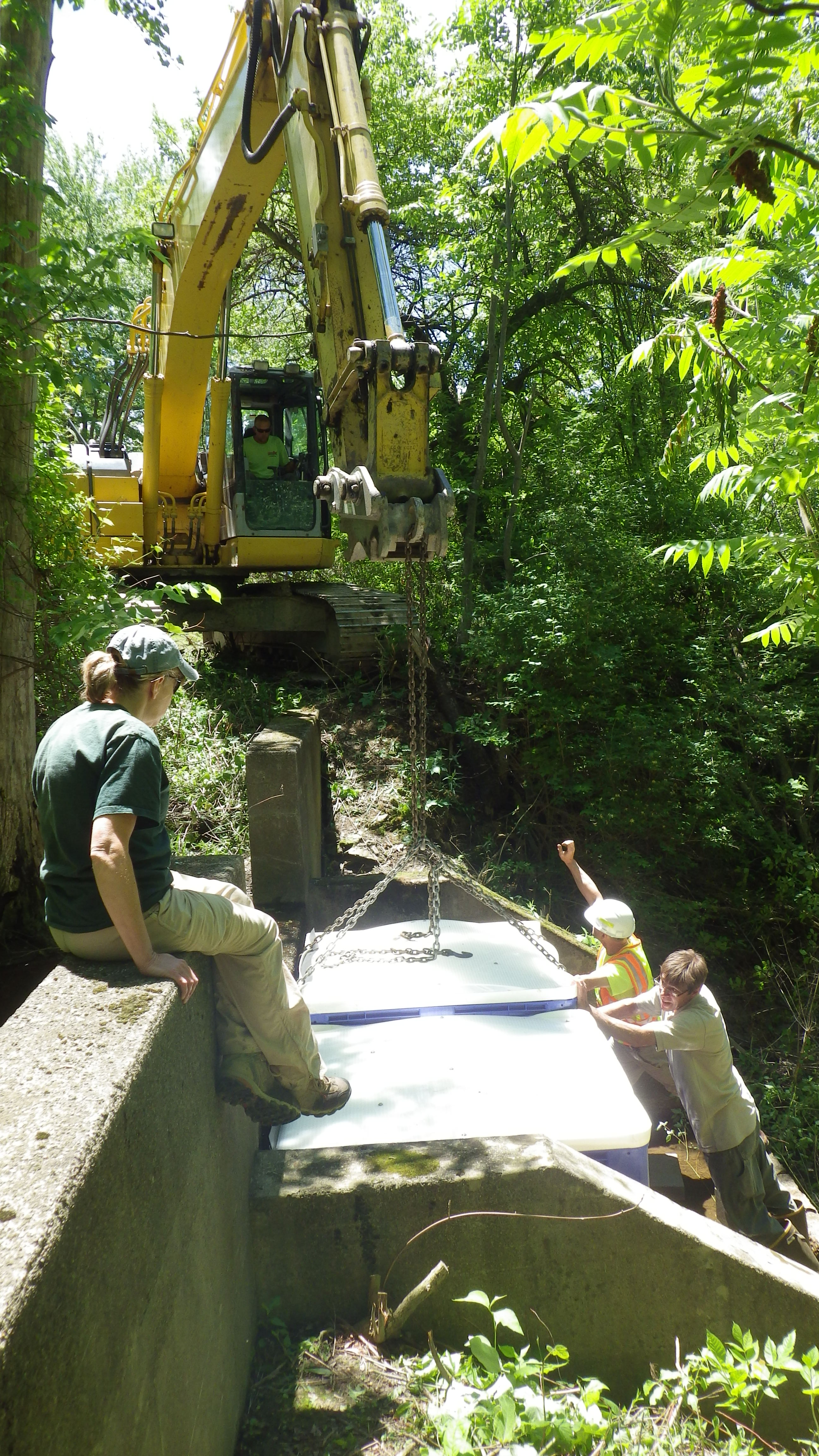 109 May 26, 2015 2592 × 4608 Staff Spotlight: Water Quality Unit Karen Terbush assists with a mycelium installation project at Lake Erie State Park. The aim of the project is to reduce bacteria levels in a stream that feeds into the former beach area.