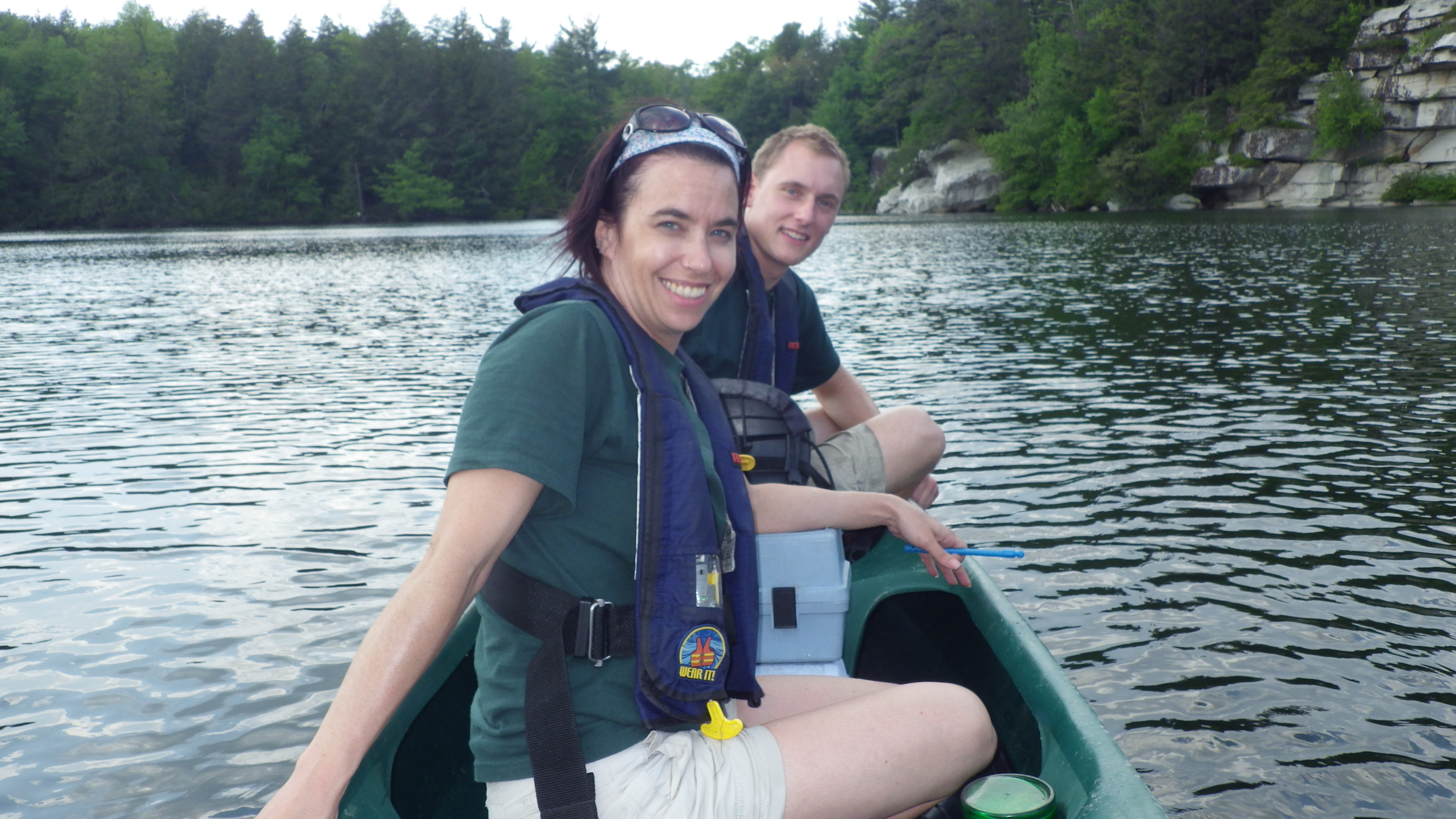 Melyssa and Dan_Minnewaska June 6 May 26, 2015 4608 × 2592 Staff Spotlight: Water Quality Unit Melyssa Smith and Dan Munsell monitor water quality on Lake Minnewaska.