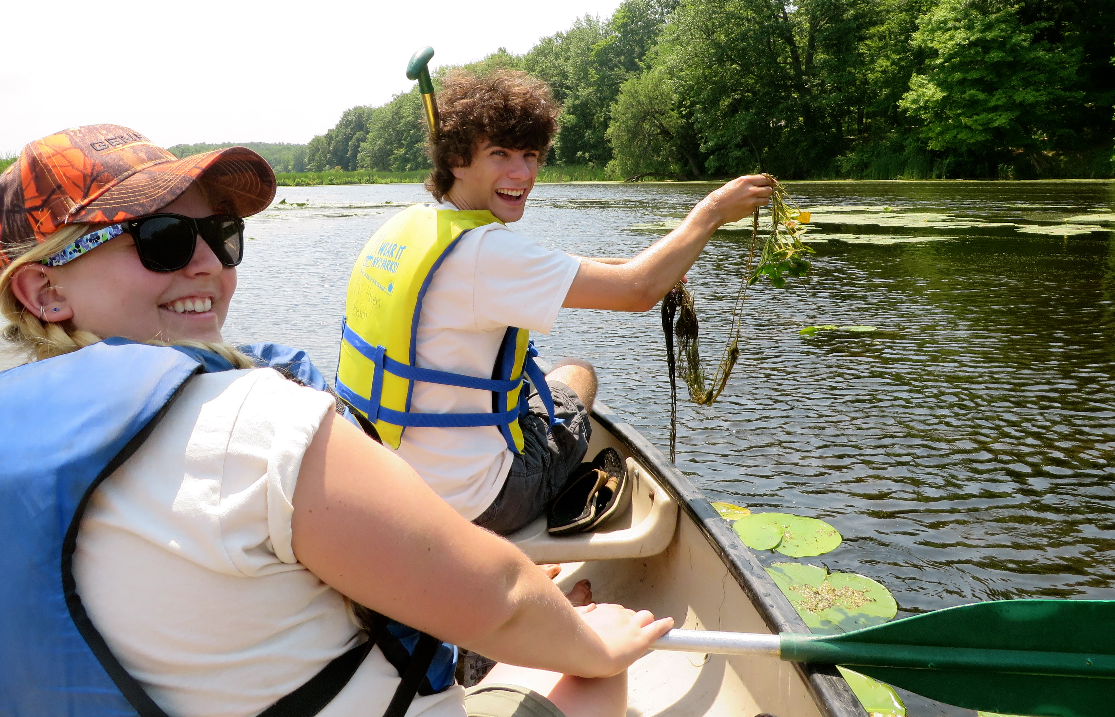 FORCES Stewards Maggie Terry (SUNY ESF) and Jake Barney (Ithaca College) pull water chestnut at Fair Haven Beach State Park. Photo by Becky Sibner September 25, 2015 3712 × 2386 FORCES : College Students Support Stewardship in New York State Parks FORCES stewards Maggie Terry (SUNY ESF) and Jake Barney (Ithaca College) pull water chestnut at Fair Haven Beach State Park. Photo by Becky Sibner.