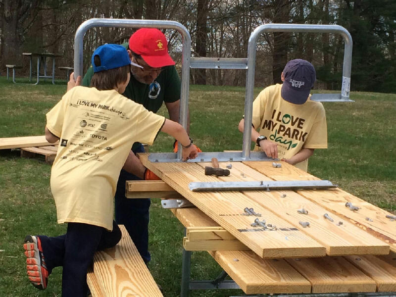 FDR April 22, 2016 800 × 600 I Love My Park Day – 2016 Constructing picnic tables at Franklin Delano Roosevelt State Park, photo by OPRHP