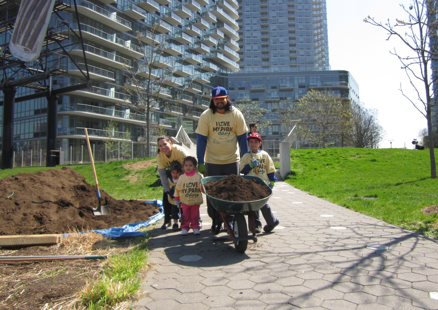 Gantry April 22, 2016 1427 × 1010 I Love My Park Day – 2016 A family helps out with landscaping at Gantry Plaza State Park, photo by OPRHP