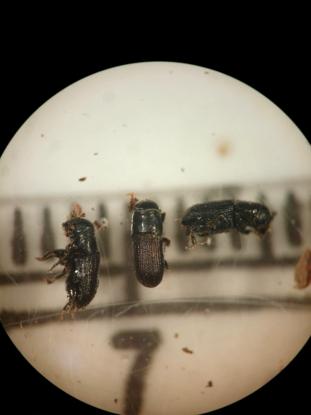 Adult Southern pine beetle, Molly Hassett DEC June 27, 2016 1020 × 1360 Southern Pine Beetle in New York Southern pine beetle adults somewhat resemble a chocolate sprinkle. These magnified adults are shown over a 1mm ruler. Photo credit: Molly Hassett, NYS DEC