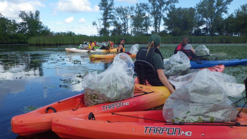 Boat Stewards July 6, 2016 1430 × 804 New York State Invasive Species Awareness Week 2016 Over the years, NYS Parks has organized invasive species pulls to help lower the effects of invasive species in our parklands. Pictured above is Boat Stewards pulling Water Chestnut from Selkirk Shores State Park. Photo by Meg Phillips OPRHP