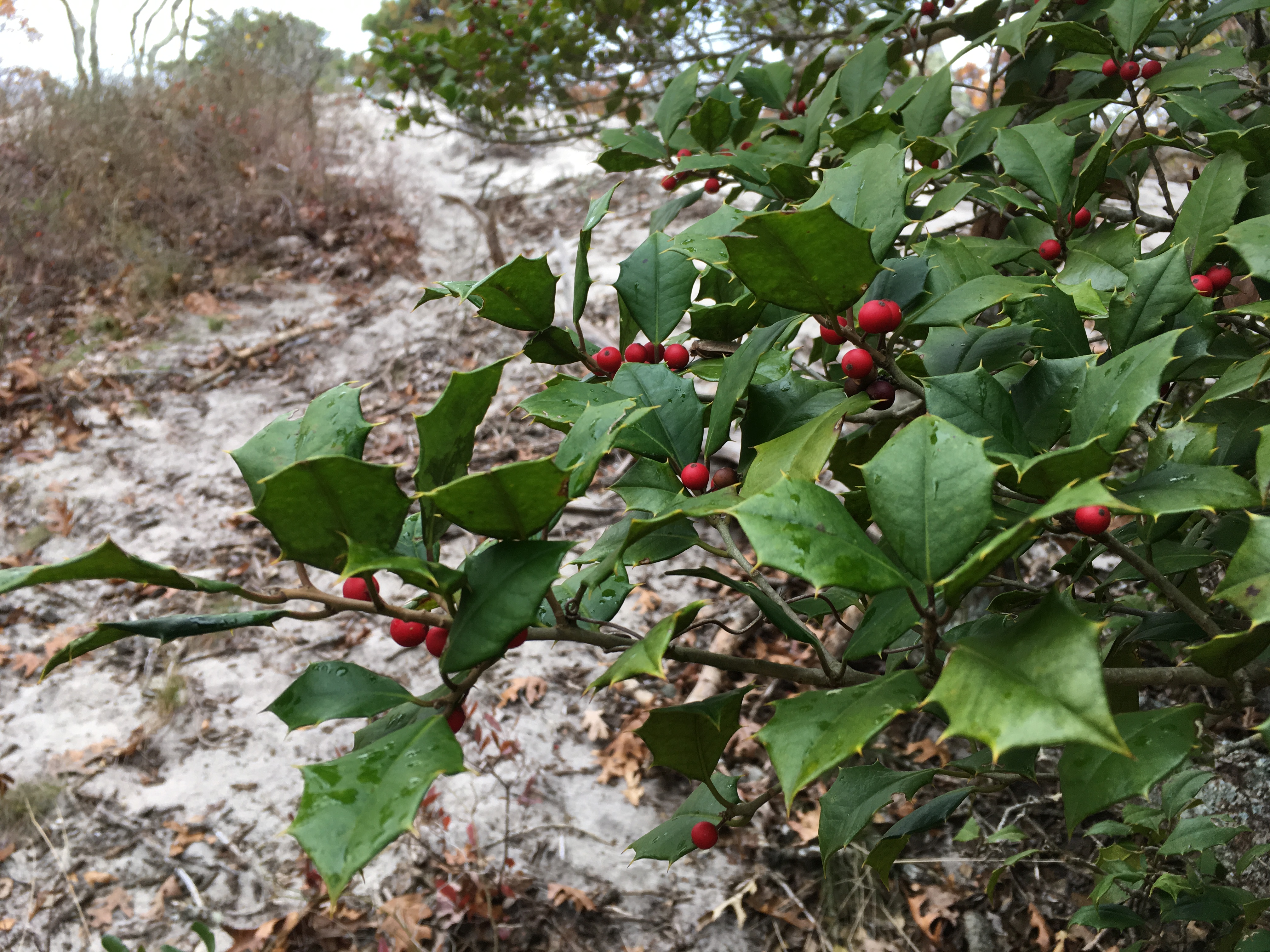 Ilex opaca December 15, 2016 4032 × 3024 Winter Greens This photo was taken in the dunes of Long Island – that is sand, not snow! Photo by J. Lundgren, NYNHP.