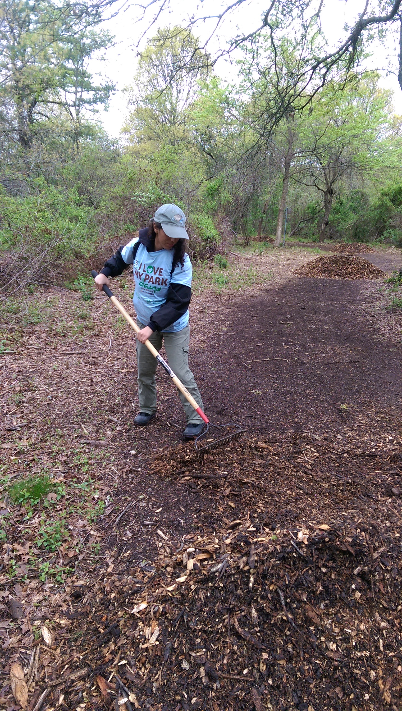 2016 Bethpage I Love My Park Day3 April 24, 2017 1520 × 2688 I Love My Park Spreading mulch in the trail at Bethpage State Park, photo by State Parks