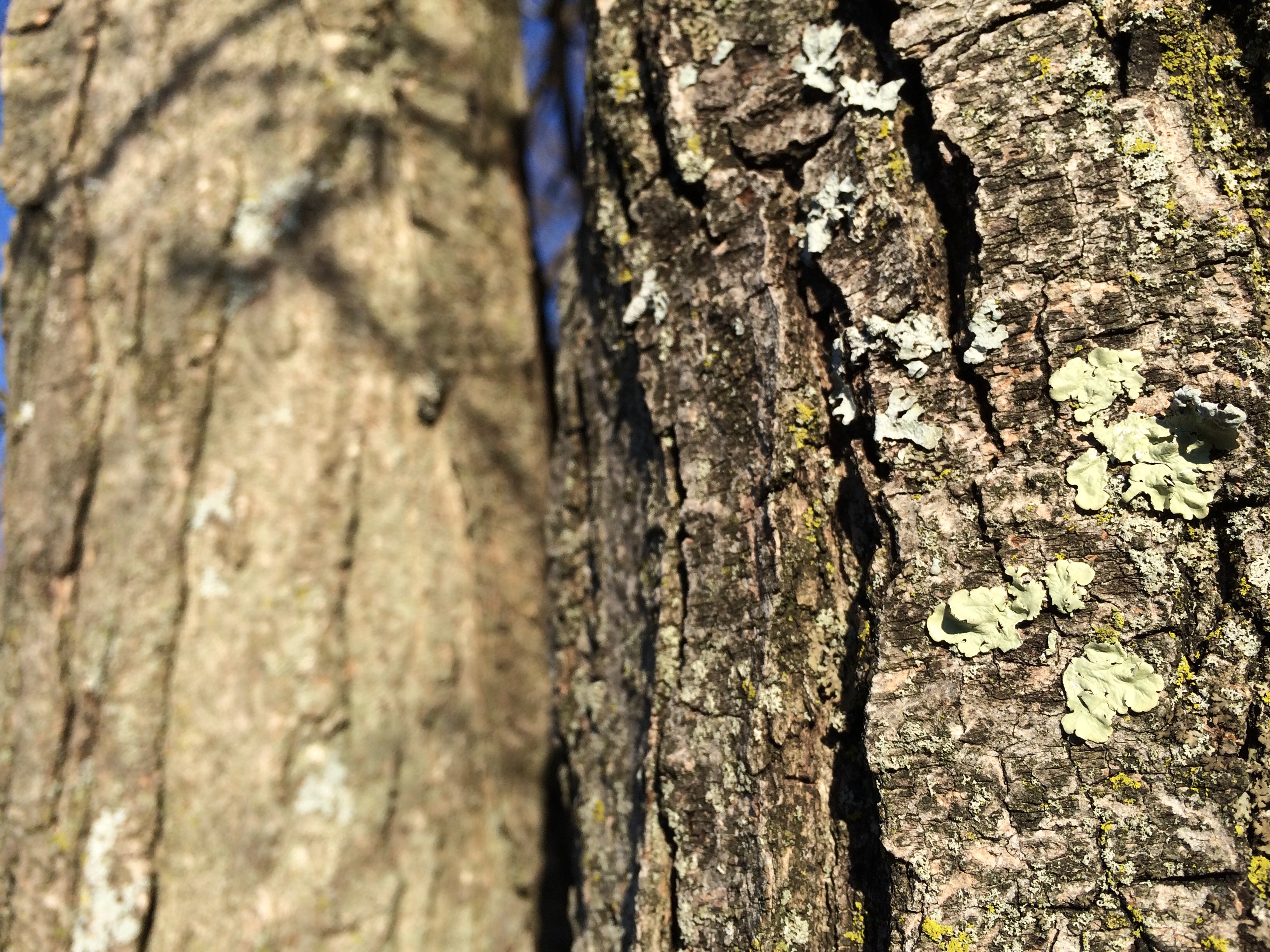 10 – Stepping back, Thacher tree with lichen (photo by Erin Lennon) May 8, 2017 3264 × 2448 Likin’ the Lichens in New York State Stepping back to admire a mix of foliose lichens (grey and light-green), crustose lichen (small golden speckles), and moss (dark green) on the same tree trunk at Thacher State Park. (Photo by Erin Lennon, NYS Parks)