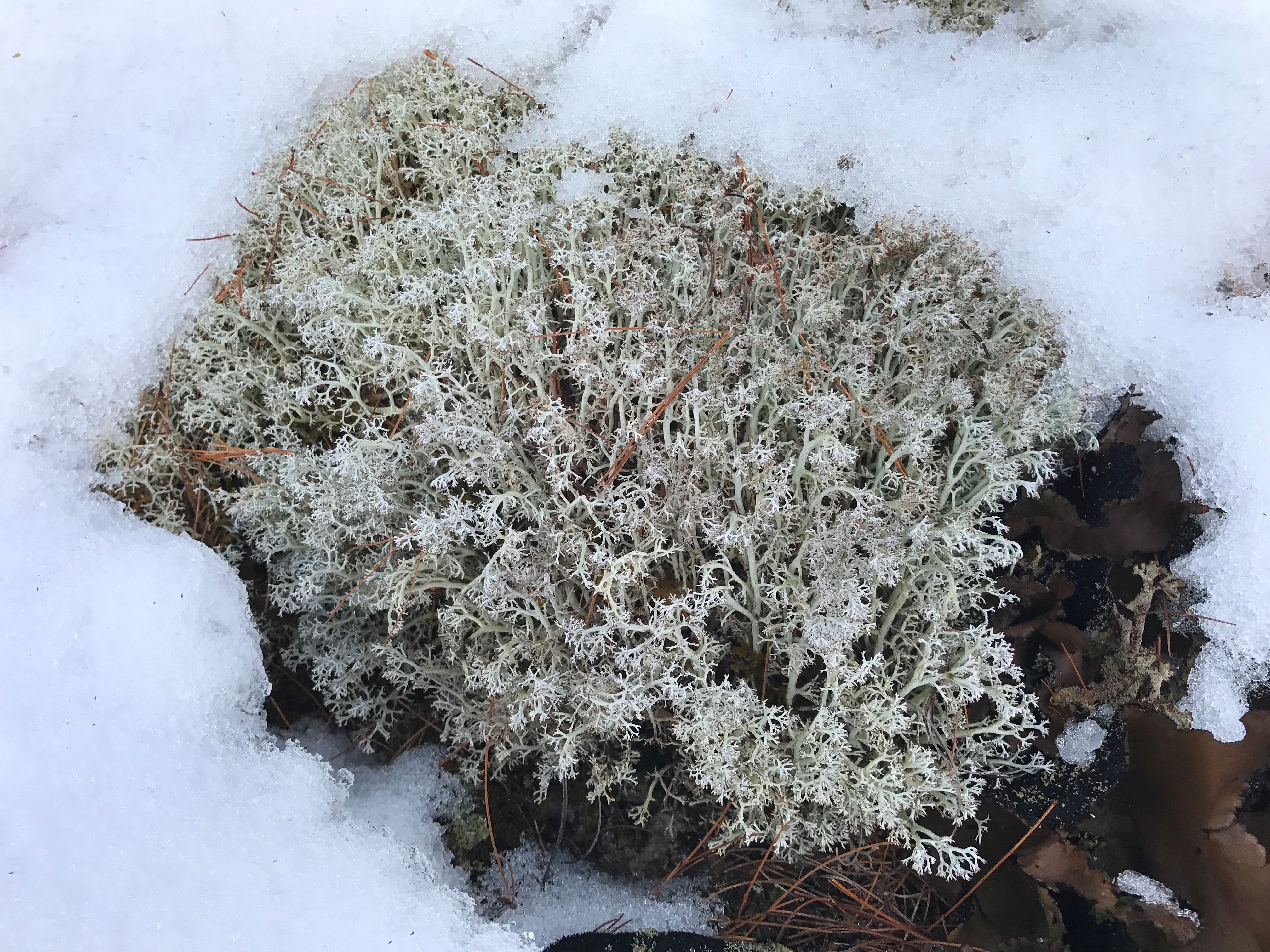 5 – Reindeer Moss Lake George (photo by Steve Young) May 8, 2017 4032 × 3024 Likin’ the Lichens in New York State Reindeer moss (Cladonia rangiferina) in the winter. Despite the name, this is actually a lichen. There are many similar species of Cladonia that can be seen in New York State Parks. (Photo by Steve Young, NYNHP)