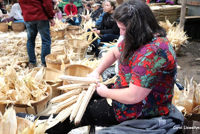 Ganondagan Husking Bee10_Carol Llewellyn November 20, 2017 640 × 427 Iroquois White Corn Project Braiding the corn, photo by Carol Llewellyn.