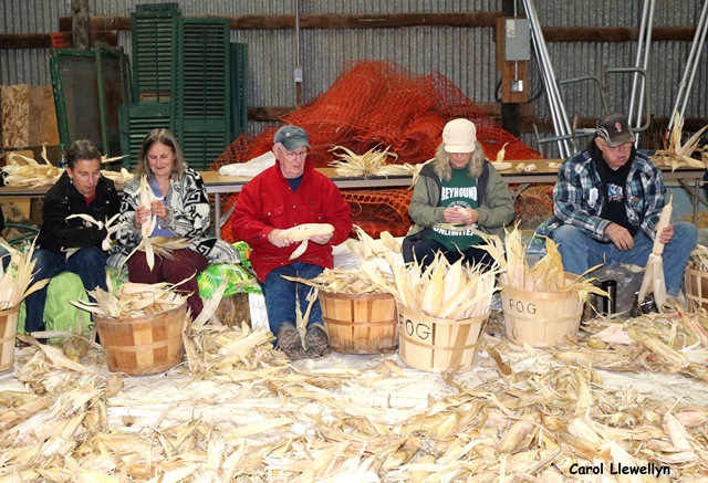 Ganondagan Husking Bee_Carol Llewellyn November 20, 2017 640 × 437 Iroquois White Corn Project A growing husk pile, photo by Carol Llewellyn