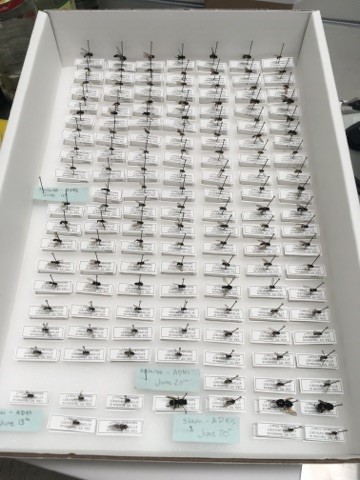 NHP@PinnedHoverFlies June 15, 2018 360 × 480 Counting the Bristlesides, Sedgesitters, Leafwalkers A box of pinned and labeled hover flies. Experts will identify these individuals to species. The specimens become a permanent record that can be used for future research. Photo courtesy of NYNHP.