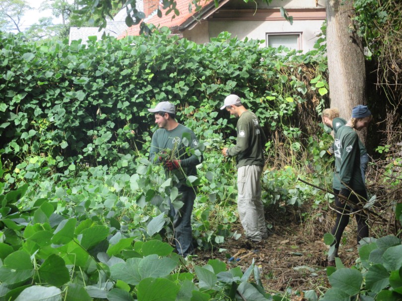 Strike team removal 2016 Shawn Gorman July 9, 2018 1600 × 1200 Invasive Species Spotlight – Kudzu State Parks Invasive Species Strike Team removes kudzu along the Old Croton Aqueduct State Historic Park, photo courtesy of Shawn Gorman, Friends of Old Croton Aqueduct State Historic Park.
