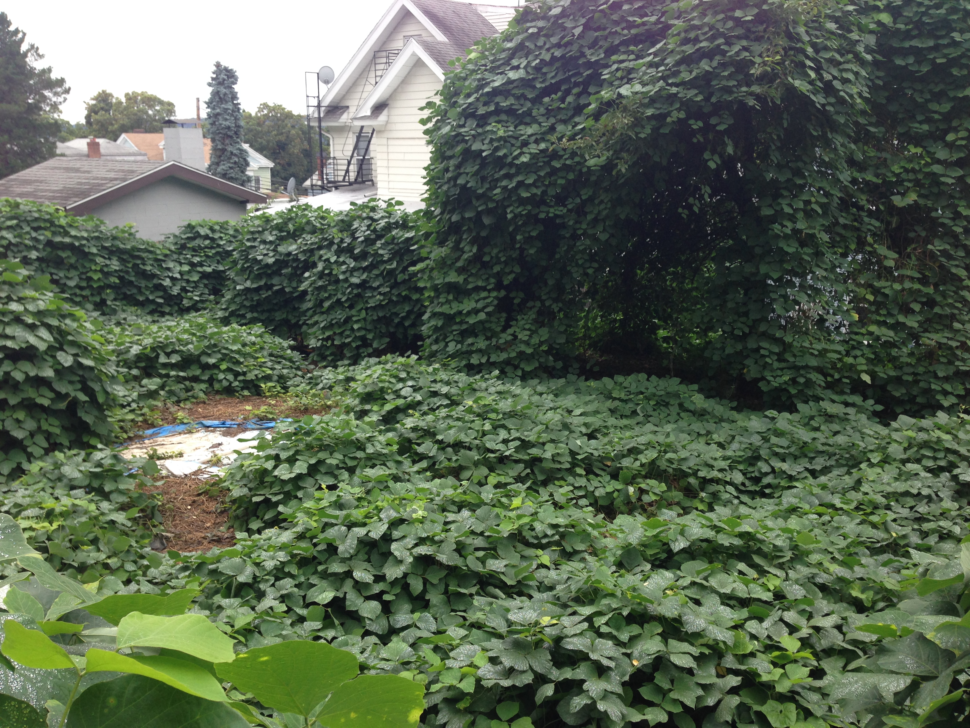 untreated priv prop (6) July 9, 2018 3264 × 2448 Invasive Species Spotlight – Kudzu A dense stand of kudzu along the Old Croton Aqueduct State Historic Park, photo courtesy of Shawn Gorman, Friends of Old Croton Aqueduct.