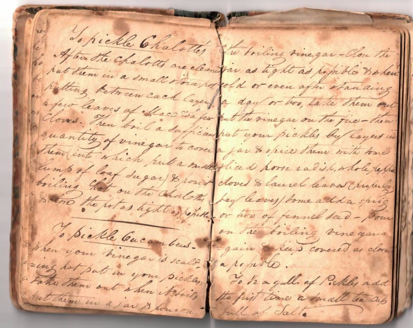 Pickled charlottes and cucumbers August 28, 2018 1264 × 1005 Yes, We Have Pickles Recipes for pickled Chalottes (shallots) and cucumbers from the Lincklaen family cookbook.