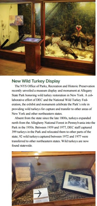Conservationist 10-2017 p 28 November 16, 2018 396 × 839 Did You Know That Allegany State Park Played A Role In Wild Turkey Restoration? Wild Turkey Restoration exhibit in the Red House Natural History Museum, image from DEC Conservationist, October 2017, p 28.