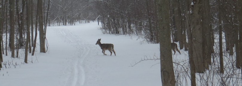 Deer February 13, 2019 1314 × 472 Evangola State Park: Lake Erie’s Winter Playground! White-tailed Deer are often seen crossing the trail, photo by Ed Conboy Jr.