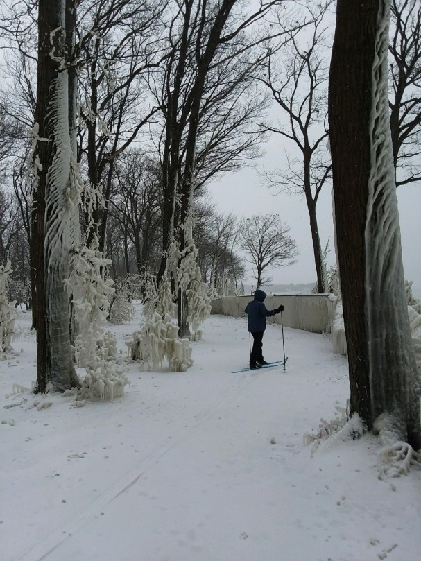 RimTrail February 13, 2019 1056 × 1409 Evangola State Park: Lake Erie’s Winter Playground! A lone skier checks out the “Rim Trail” view. During winter, arctic waterfowl and even an occasional Snowy Owl can be seen. Some of the biggest Red Oak in the park also occur along this trail.