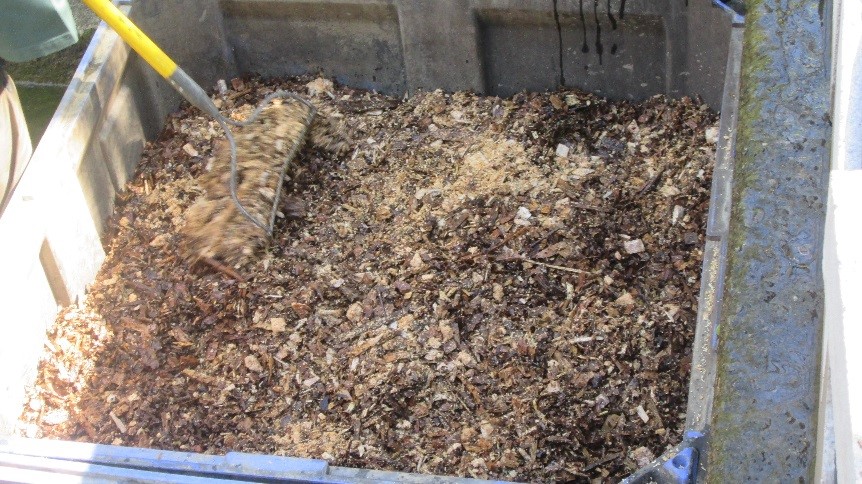 Mycelium and wood chips are mixed together in the totes. (Photo Credit- State Parks)