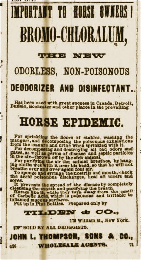 Pharmacies across the state offered a variety of “cures” for the horse flu.