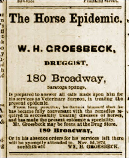 There is considerable discussion in political circles, as to whether the sickness of so many horses through the country may not have an effect on the result in this and some other states by preventing country voters from getting to the polls on Tuesday, the [Presidential] election day.” Buffalo Courier and Republic Oct 31 1872.