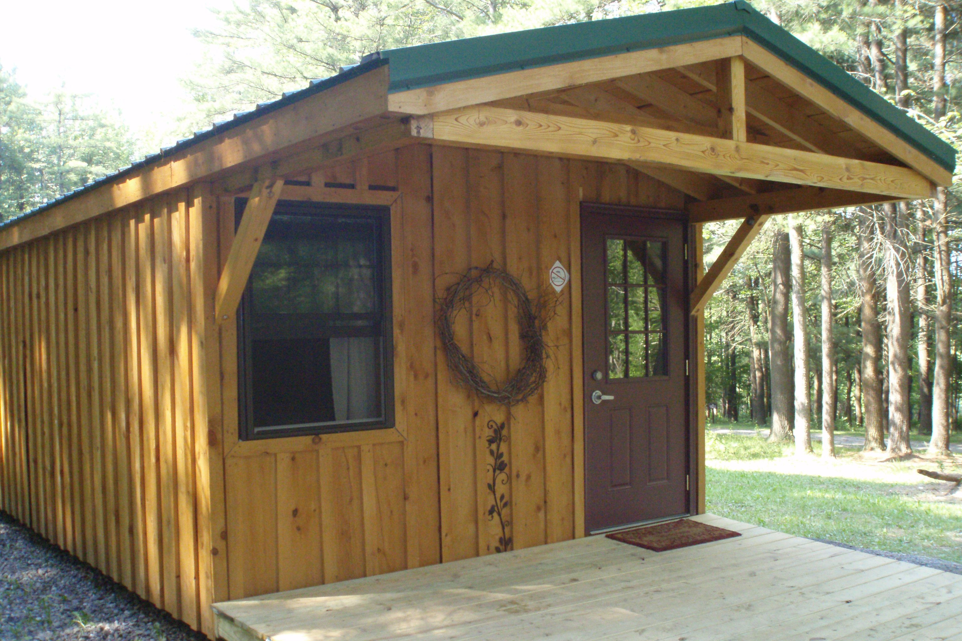 Rustic cabins at Bowman Lake State Park in Oxford, NY, in State Parks’ Central region.