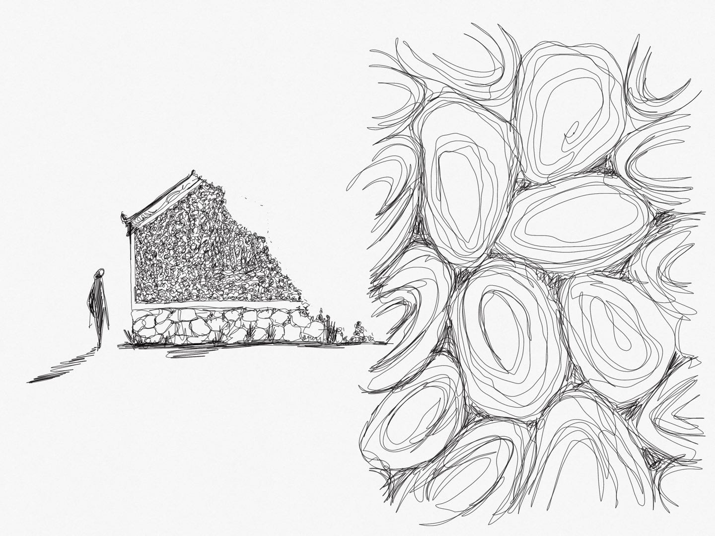 Having chosen an artifact, students wrote poems and created a drawing about it. But instead of producing abstract scientific diagrams or architectural renderings, they instead reflected upon alternative ways of representing the environment—ways that prioritize artistic, rather than strictly scientific, approaches. Maryam Popoola, for instance, sees an owl pellet not simply as an object for dissection but as a metaphor for the ever-changing nature of form. Valen Zhang’s poem and drawing considers oysters’ dynamic interactions with the ocean, beach, and built environment. For Marcos Garcia, beach grass on a sandy dune becomes a nexus between humans, lifestyles, and ecological impact. Masa Crilley depicts a horseshoe crab not in isolation, but in a long history that connects underwater worlds, Native American fishing practices, and industrialization.