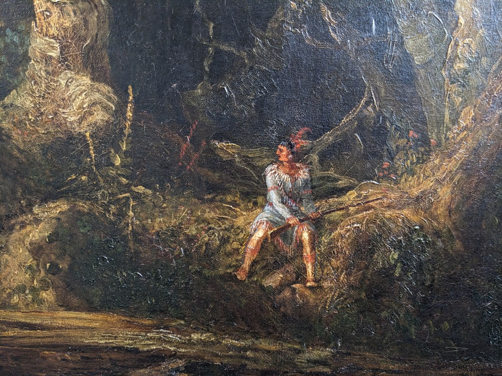Elizabeth Robson: “In terms of the paintings I have worked on for New York State, the most meaningful one so far has been the treatment of Thomas Cole’s “A Solitary Lake in New Hampshire”. This wonderful example of a Hudson River School painting will be featured in the exhibition Native Prospects: Indigeneity and Landscape Painting at the Thomas Cole National Historic Site next year. This exhibition includes works by contemporary Indigenous artists, highlighting their knowledge and art practices, which aligns with New York State’s continued emphasis on Our Whole History. It has been a pleasure to be able to closely examine the details of this large landscape, including the Native American figure, birch bark canoe, and many-pointed stag.”