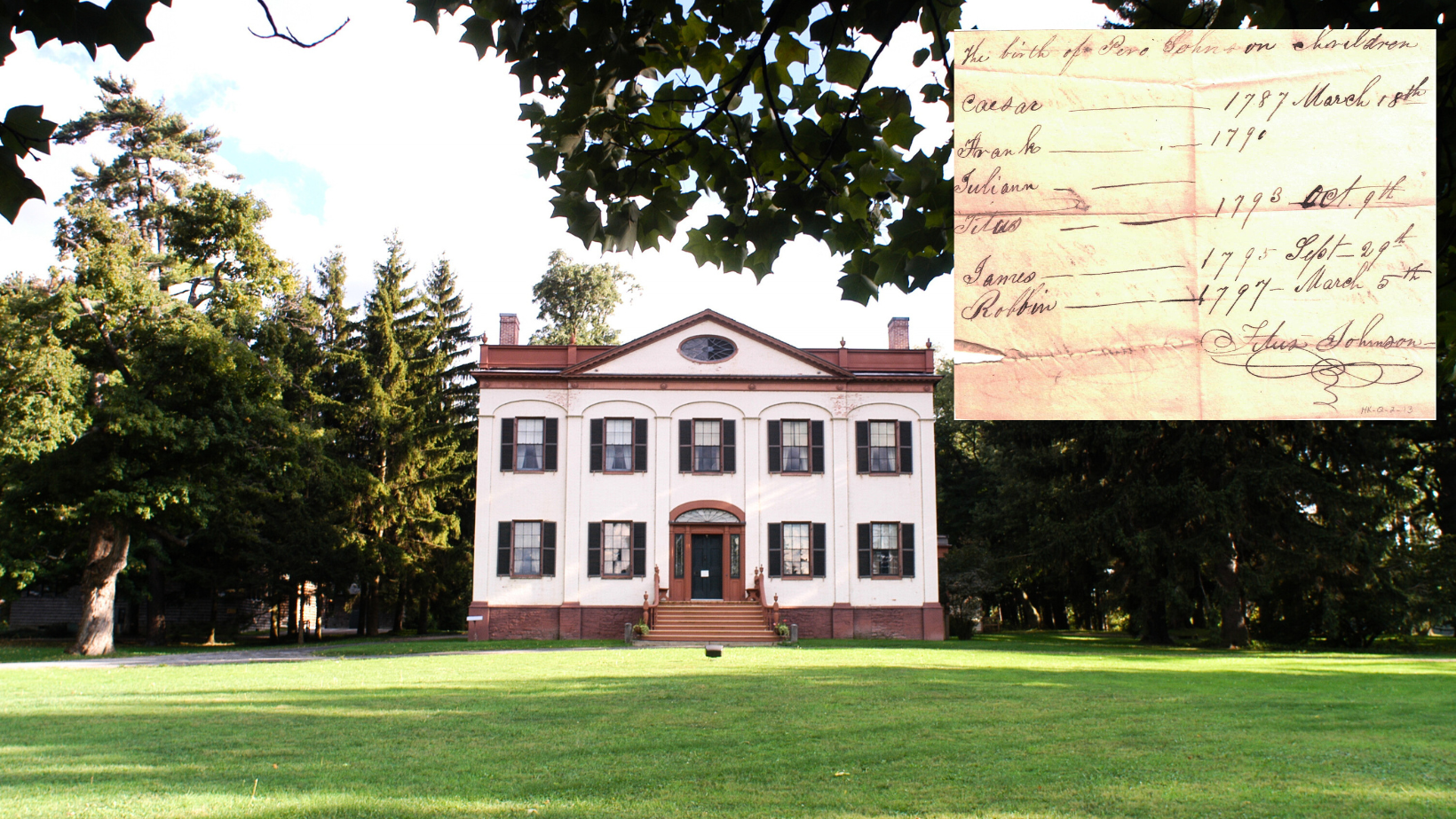 Caesar, Titus, and Juliann Johnson—siblings—are confirmed to have been enslaved by the Lincklaens. Enslaved persons Tom and ‘his wife’ were referred to by Lincklaen in an 1806 letter. Harriet, a multiracial child, was born at Lorenzo on January 25, 1811. According to Lincklaen’s estate inventory, Harriet was “born of a slave…never having been considered by her late master or her mistress in the light exactly of a slave.”