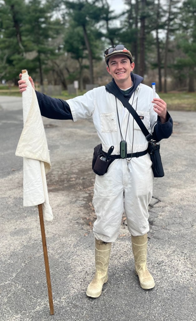 I’ve been doing tick surveillance in the Long Island region of State Parks for about four years now, and I enjoy sharing the things I’ve learned with fellow staff and patrons. Surveillance is important for monitoring the efficacy of our management actions, and for keeping an eye out for range expansions of tick species, such as Asian longhorned ticks or Gulf Coast ticks. If you’re in a state park on Long Island, you might see me out and about in my survey gear, and you’ll never see me without a lint roller! I do my best to prevent myself from being bitten while collecting ticks for surveillance. I have to go off-trail and into remote areas where you wouldn’t expect to see someone, but don’t worry, I’m on official business!