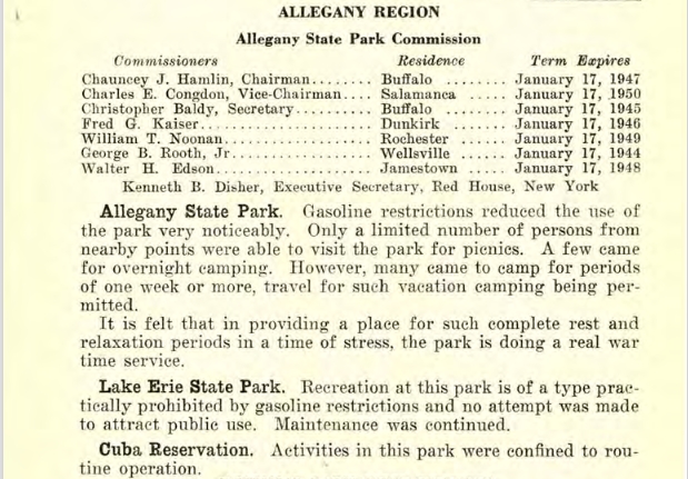 New Yorkers responded by the millions, flocking to these beaches, pools, lakes, mountainsides and meadows. Visitors to the early park system mostly enjoyed an afternoon outdoors, on trails, at picnic groves or by the water. Organized groups or hardier nature lovers camped overnight. During World War II, however, things began to shift. Gasoline and rubber rationing kept Americans at home, causing a lot of pent-up demand for recreation among the public.