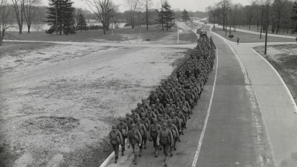 The second part of this era details the mobilization of New York’s state parks during World War II. With state and federal budgets shifting from domestic economic recovery to the war effort, funding was once again withheld for expansion and maintenance projects. This led to even more projects being deferred. Nevertheless, limited development of state parks continued as New York State Parks proved crucial during World War II. Across New York, parks, historic sites, and their staff answered the call to support the war effort. Jones Beach State Park hosted a popular USO Lounge. Clarence Fahnestock State Park served as a temporary home for British soldiers. Scores of State Parks staff enlisted to fight.