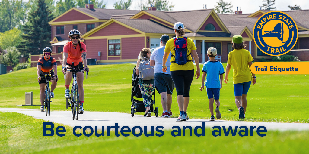 Before heading out on your Empire State Trail journey, some quick, common-sense tips to navigate busy trails safely, while being aware of the wide variety of trail users and occasional intersections.