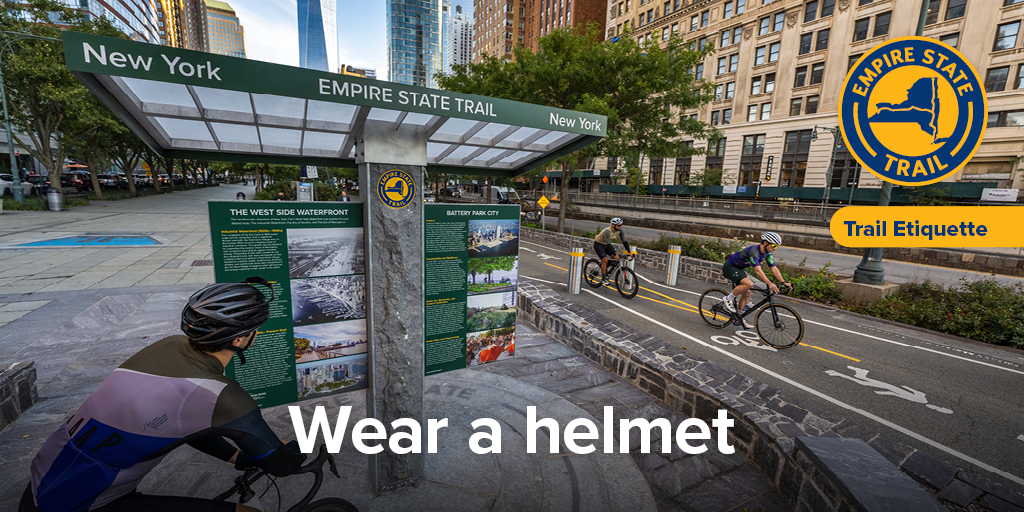 - Use and listen for bike bells. Cyclists must slow down for other trail users, use a bell or call out to alert others, and pass safely on the left. Under New York State law, all bicycles must be equipped with a bell that can be heard from 100 feet away.