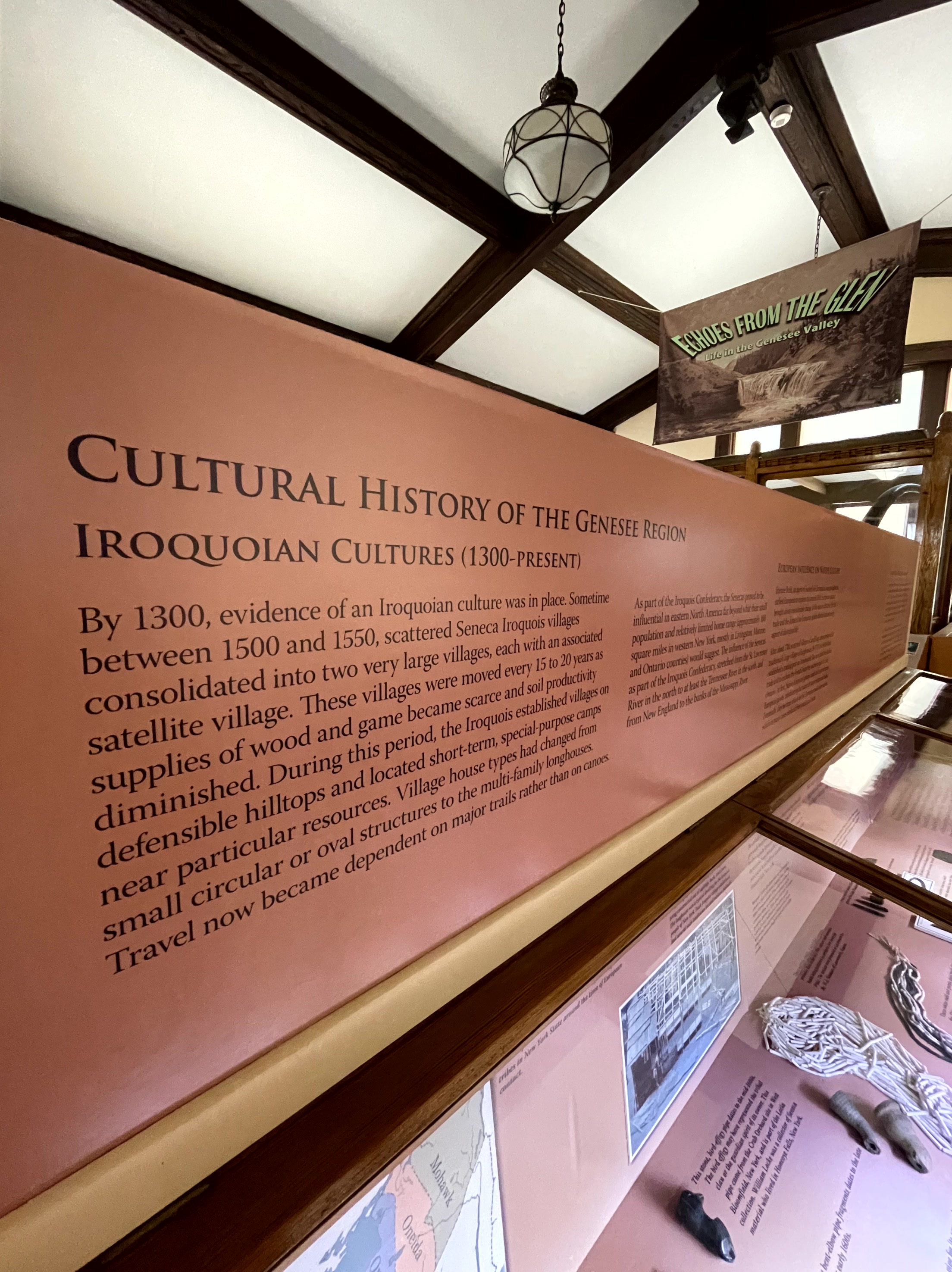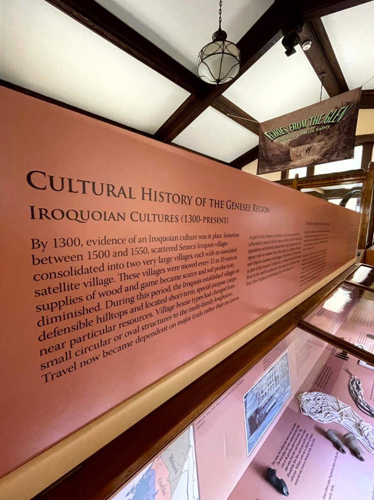 Letchworth specified in his will that as part of his estate’s transition process from private retreat to state park, it should include a stone museum. That museum was finished in 1913, and is open to this day. It’s home to Degewanus’ original headstone, her extensive family tree, and items she used in her daily life. Displays interpret the international significance of Cornplanter and Handsome Lake. There are Indigenous artifacts from Letchworth’s collections, and a timeline of Indigenous cultures who lived in the region. The park’s history department staffs the museum every day from May to the end of October, answering questions and presenting near-daily programs.
