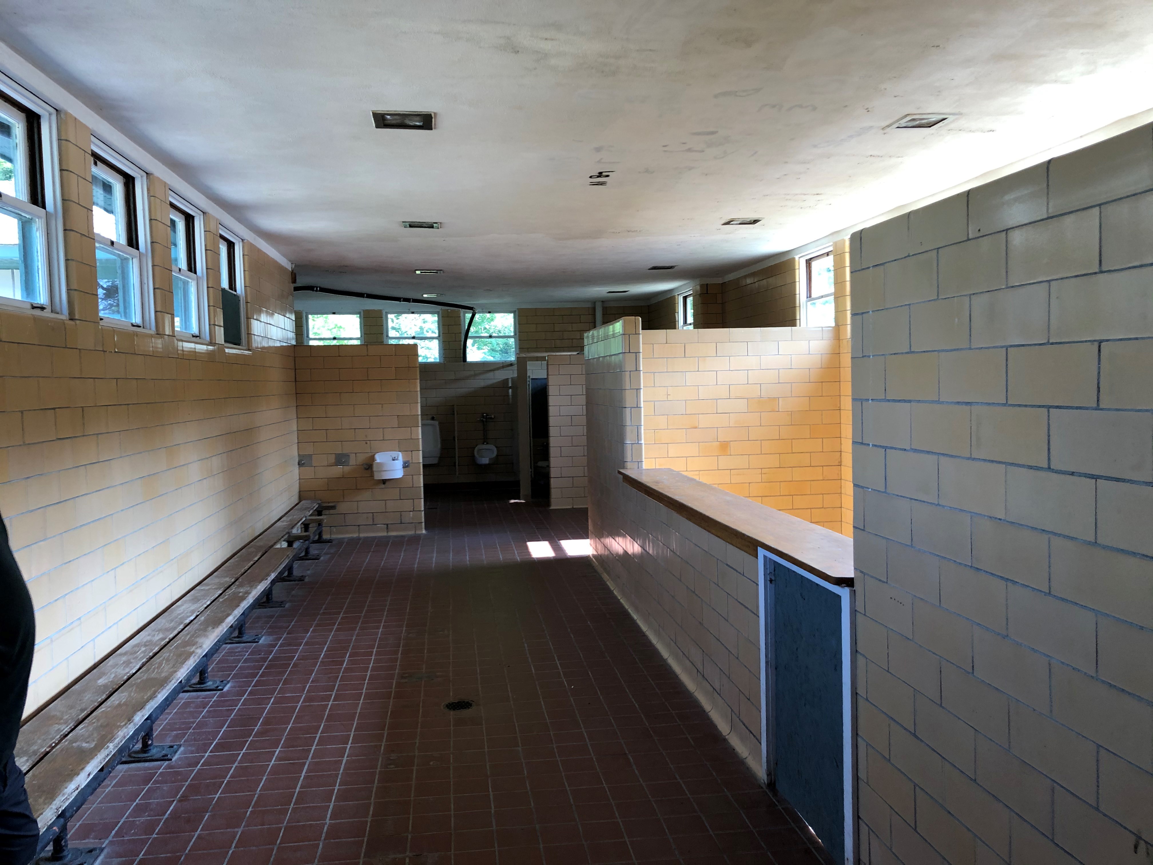 The design of the 1957 bathhouse illustrated the trend towards a modern park aesthetic. No longer evident are hints of the rusticity of the preceding era, either in form or material, nor traditional design sources. Instead, the building employs a rectilinear brick exterior. Its overall form is geometric, with flat roof surfaces and steel-frame windows, many of the tripartite “Chicago window” type.