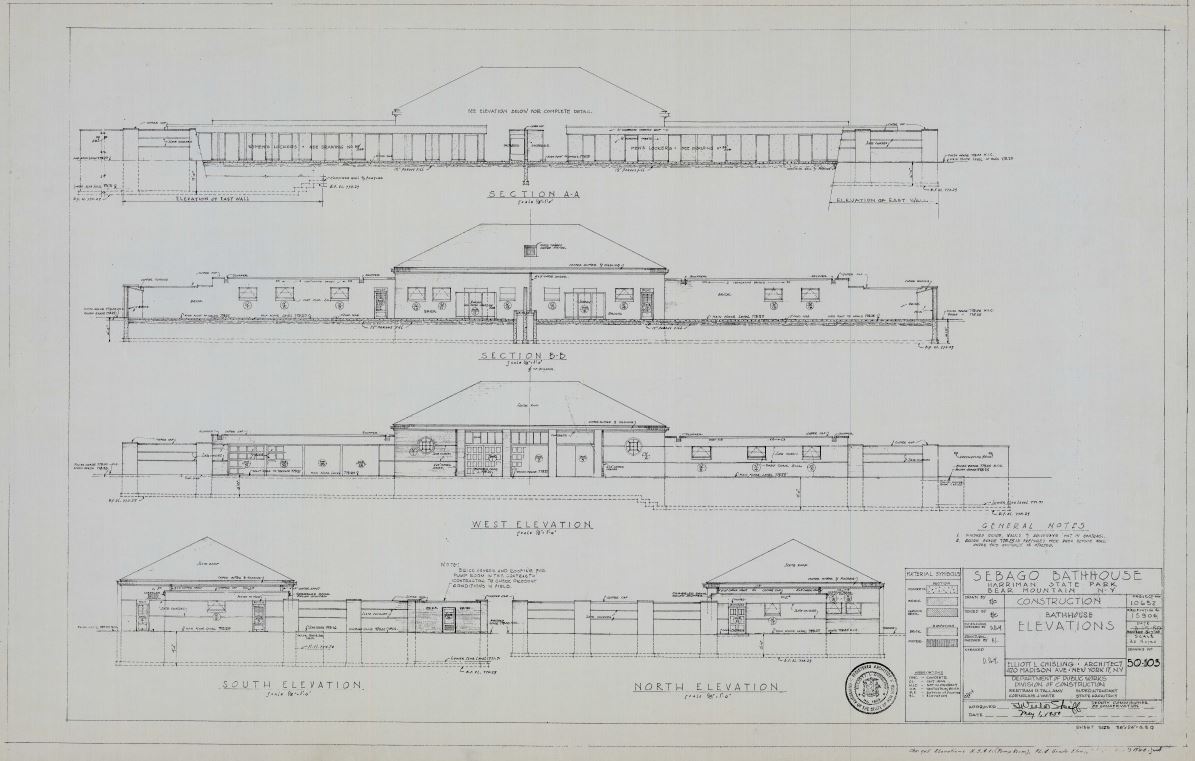 Although not precisely of modern conception, in the context of the Harriman-Bear Mountain complex, it represented a significant departure from the rustic motif that was established early and used extensively in the Palisades Interstate Park. This distinction becomes clearer when the building is contrasted with the bathhouse at Lake Tiorati, with its sloped heavy stone walls and low hipped roof.