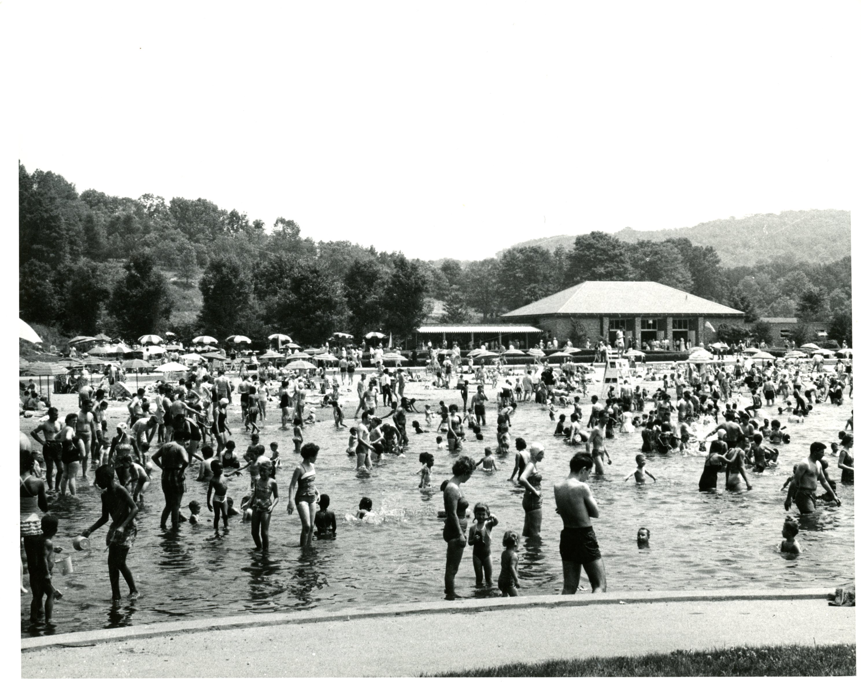 At Harriman State Park, a new beach at Lake Sebago and the Anthony Wayne Recreation Area expanded the park’s recreational capacity. With the completion of the Palisades Interstate Parkway, demand for state park facilities increased. The Lake Sebago beach development and the bathhouse addressed this demand. The new beach area could accommodate 2,000 automobiles and 10,000 patrons.