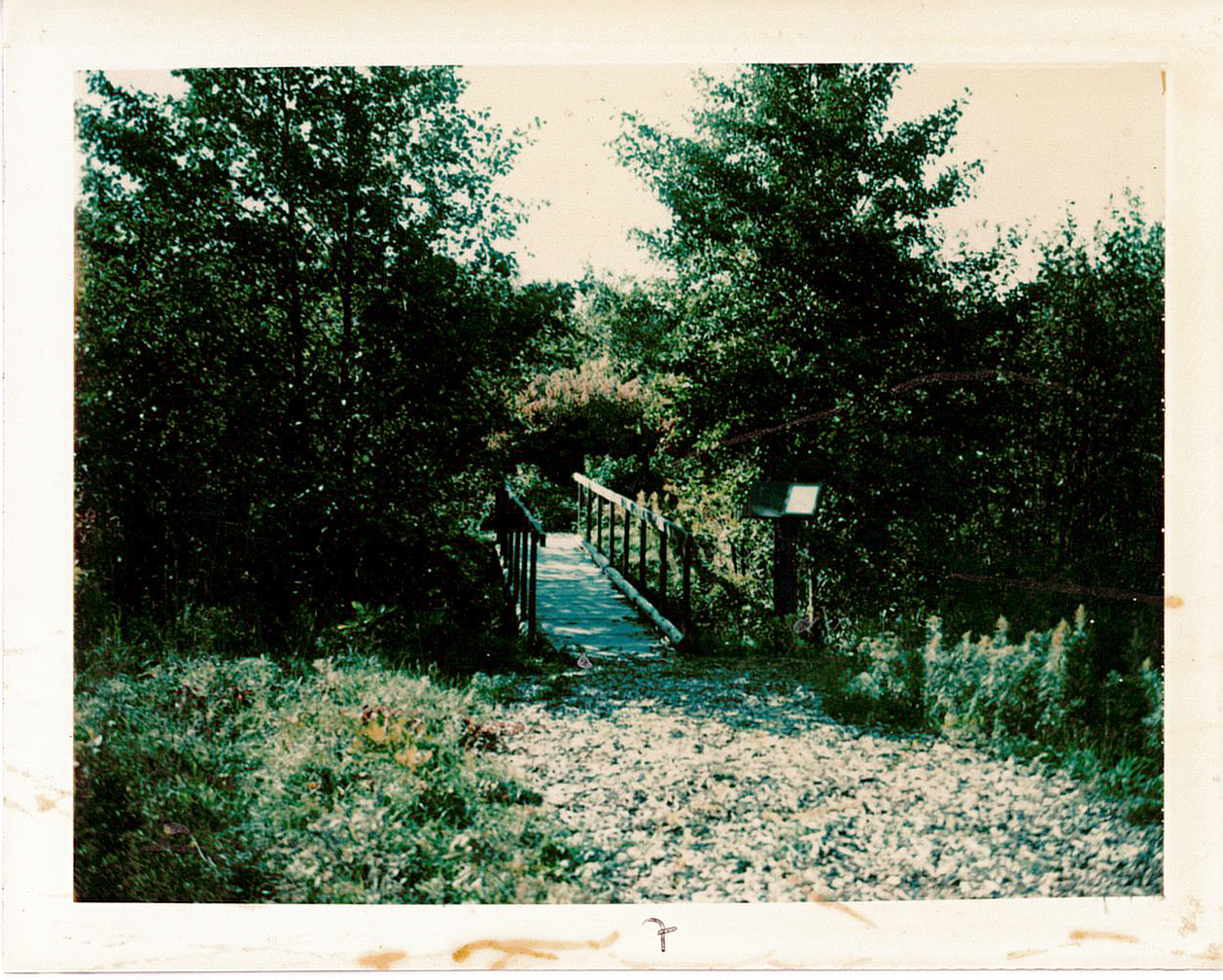 By the fall of 1978, Yanty Marsh Trail was open. An archway at the start of the trail gave way to a gravel path. The trail, equipped with interpretive signs, was used to teach ecological succession, or the gradual introduction of species in an area as it regenerates. The trail began in an old field, now a forested area, and slowly made its way through at least seven distinct habitats: a field, shrub fields, lakeshore, a marsh, a pond, a white pine lot, and deciduous woods. The habitats supported an abundance of wildlife. Meadowlarks and bobolinks sung in the old field. White sweet clover was a common sight along the trail. In early summer, a black tern traveled from South America to nest in the marsh. Successional plants such as quaking aspens and staghorn sumac indicated early signs of a forest among the shrub fields. Just beyond the white pine lot, about 80 meters from the farm pond, was one of these shrub fields. A trail guide from the era notes small conifers growing among the shrubs. The guide asks visitors to consider what the trail might look like in fifty years.