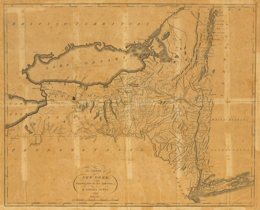 The American Revolution dramatically changed the dynamics in upstate New York, as differing alliances fractured Haudenosaunee unity. Genocidal campaigns further weakened and dispossessed the land’s Indigenous inhabitants, and American veterans were granted lands there in payment for their service. Following the Revolution, land speculators and politicians like George Clinton and Philip Schuyler attempted to encourage further settlement of the future Canal Corridor by entering into dishonest and often illegal treaties with the Haudenosaunee, as well as chartering transportation improvements such as the Western Inland Lock and Navigation Corporation in 1792, which aimed to improve the Mohawk River’s navigation through the construction of dams, locks, and small canals.