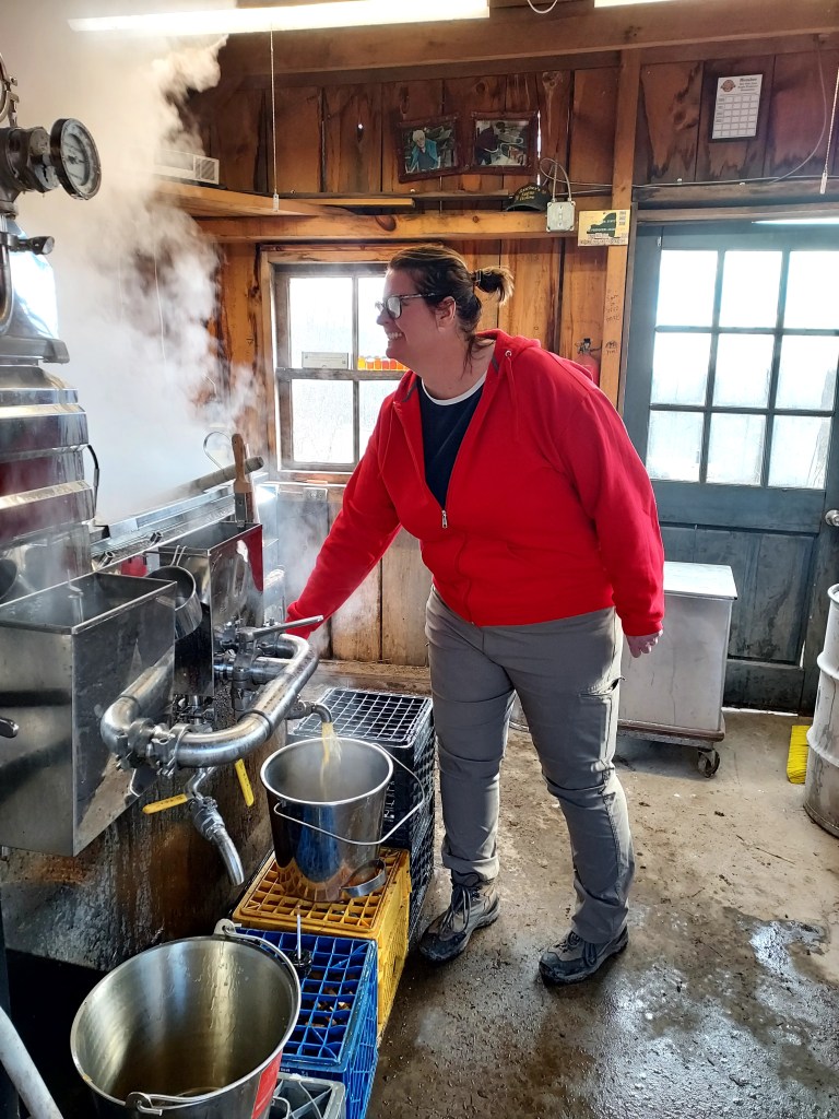 People who make maple syrup are called sugar makers, and the places they make syrup are called sugarhouses (not sugar shacks). Some are hobbyists who tap just a few trees; others have commercial operations with tens of thousands of trees. Regardless, most sugar makers are very friendly and generous, and many real characters. It is a long-standing tradition for sugar makers to visit one another and socialize whenever they aren’t making syrup themselves. Often, they’ll just drive around until they see steam billowing from somebody else’s sugarhouse. If the owner can spare the time, conversations can last for hours and will almost certainly include the weather and how much syrup they have made to date!