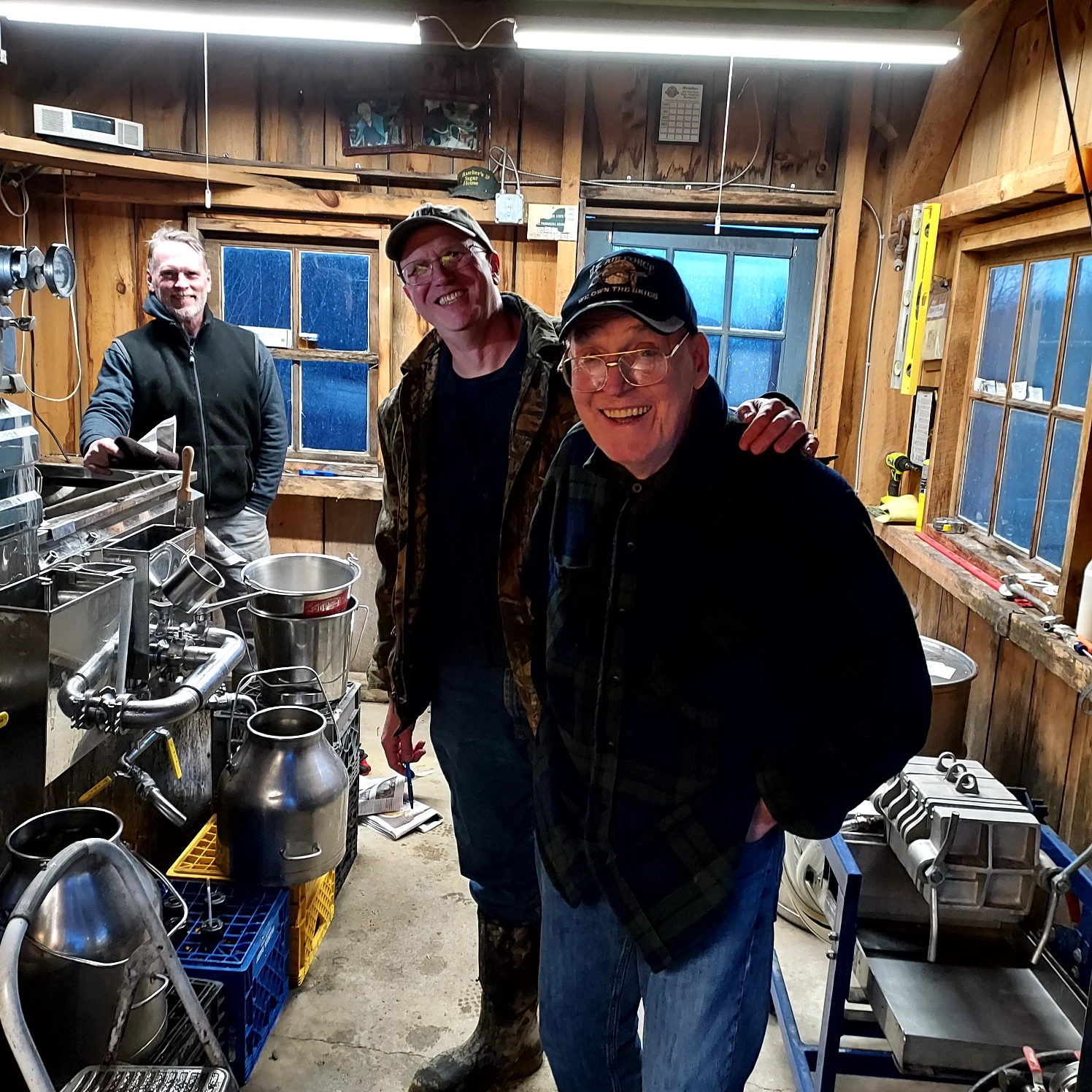 People who make maple syrup are called sugar makers, and the places they make syrup are called sugarhouses (not sugar shacks). Some are hobbyists who tap just a few trees; others have commercial operations with tens of thousands of trees. Regardless, most sugar makers are very friendly and generous, and many real characters. It is a long-standing tradition for sugar makers to visit one another and socialize whenever they aren’t making syrup themselves. Often, they’ll just drive around until they see steam billowing from somebody else’s sugarhouse. If the owner can spare the time, conversations can last for hours and will almost certainly include the weather and how much syrup they have made to date!