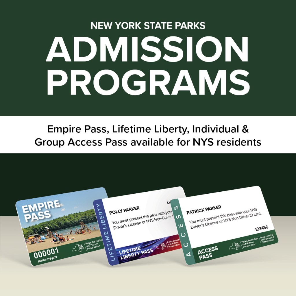 Take advantage of our Pass Programs. The Empire Pass is $80 per calendar year, covers vehicle use fees, and is open to all New Yorkers. It pays for itself in roughly eight visits. If you visit regularly, it’s perfect for you! Roughly 70 public libraries have one that you can borrow, so consider checking with yours if purchasing a pass doesn’t work for you. The free Lifetime Liberty Pass for veterans, active military and Gold Star Families also includes free greens fees, free swimming pool entrance, and a refund on the base rate for camping. The Access Pass for people with disabilities offers similar benefits and is also free. And if you’re 62 or older, the Golden Park Program provides free weekday entry to most of our parks with just a New York State driver’s license or non-driver ID.