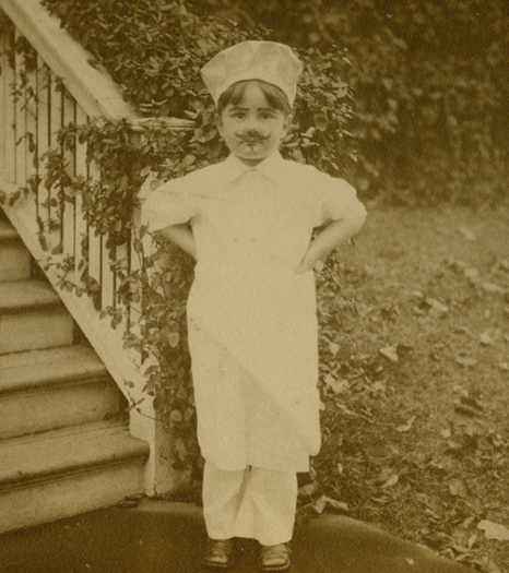 William Jay Iselin (left) dressed as an 1800s gentleman and Eleanor Iselin (right) as a French chef, 1915. William and Eleanor were the second and third children of Eleanor Jay and Arthur Iselin, last owners of John Jay Homestead. Photograph. New York State Parks, Recreation and Historic Preservation. John Jay Homestead State Historic Site. Museum Collection, JJ.2015.28 and JJ.2015.30.
