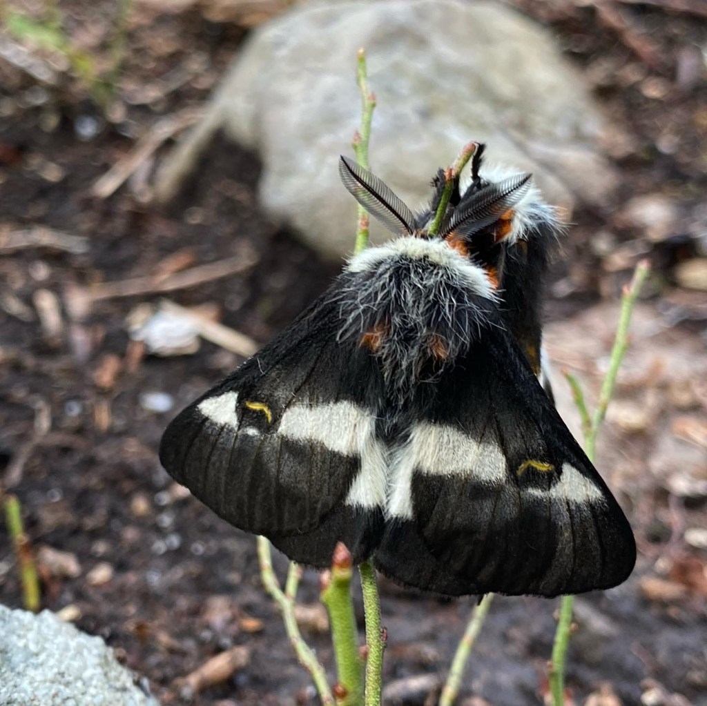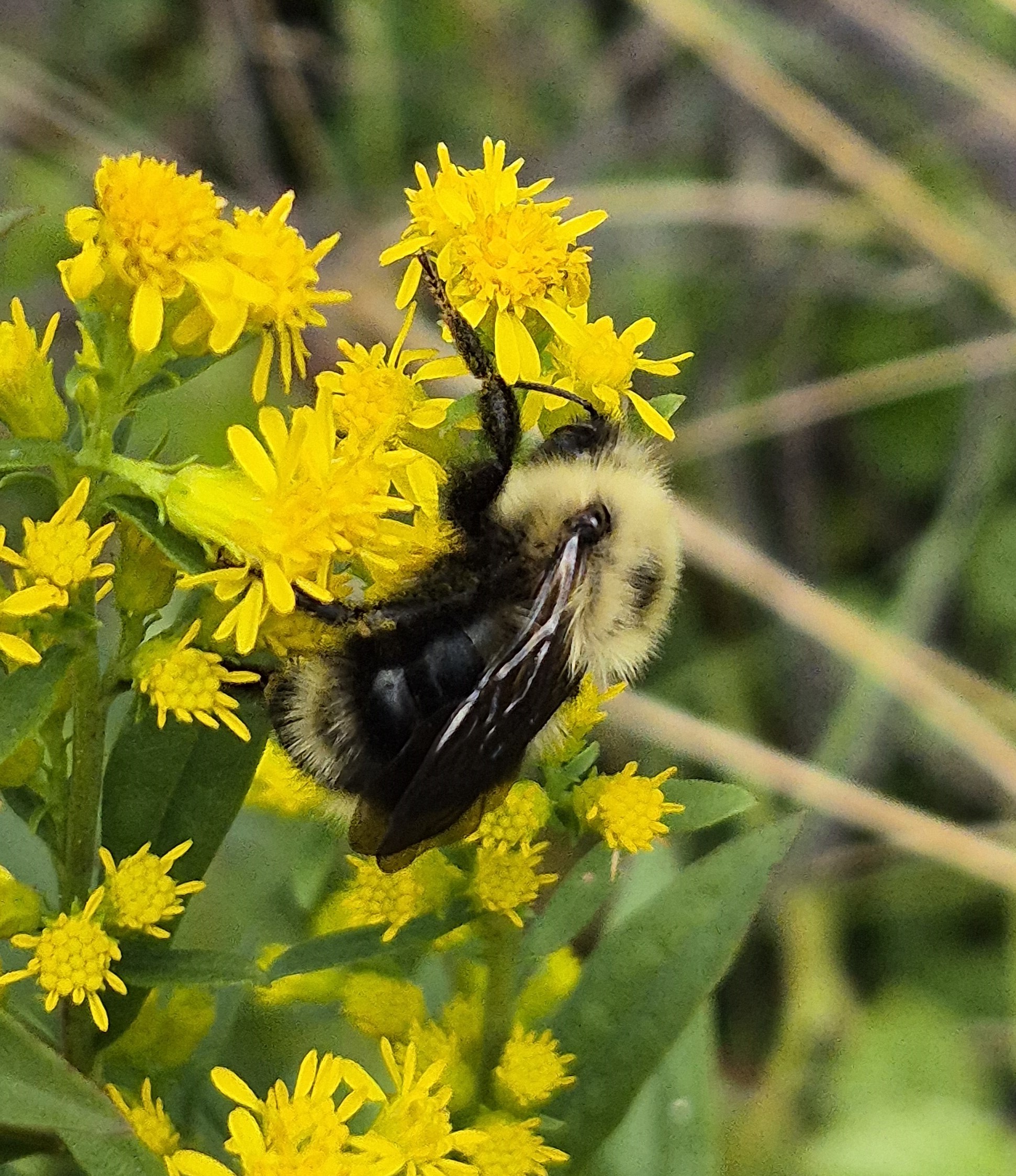 Here’s proof that even insects can be cute and fuzzy! At Minnewaska State Park Preserve, our zoologists found the rare inland barrens buckmoth (Hemileuca maia maia) at several locations, and an imperiled cuckoo bumble bee (Bombus flavidus). This buckmoth depends on scrub oak for its food and life cycle. The bee requires a variety of native nectar sources like this goldenrod found in fields and woodland edges in the park.