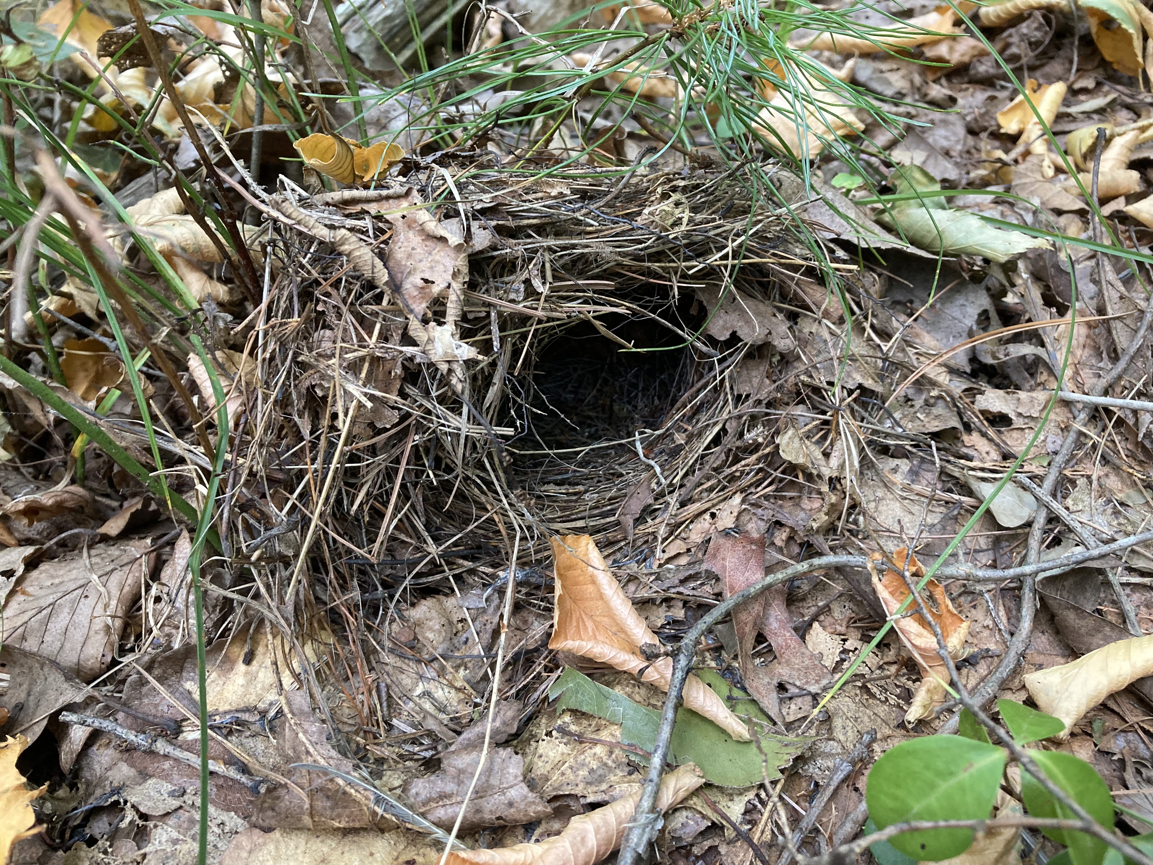 And at Sterling Forest State Park, our ecologist happened upon this oven bird nest. Built from pine needles and twigs and looking a bit like a little outdoor oven, after which the bird was named, it was barely visible on the forest floor. Oven birds are a common species that are easy to identify in spring or summer by their song, but mostly quiet by late fall.