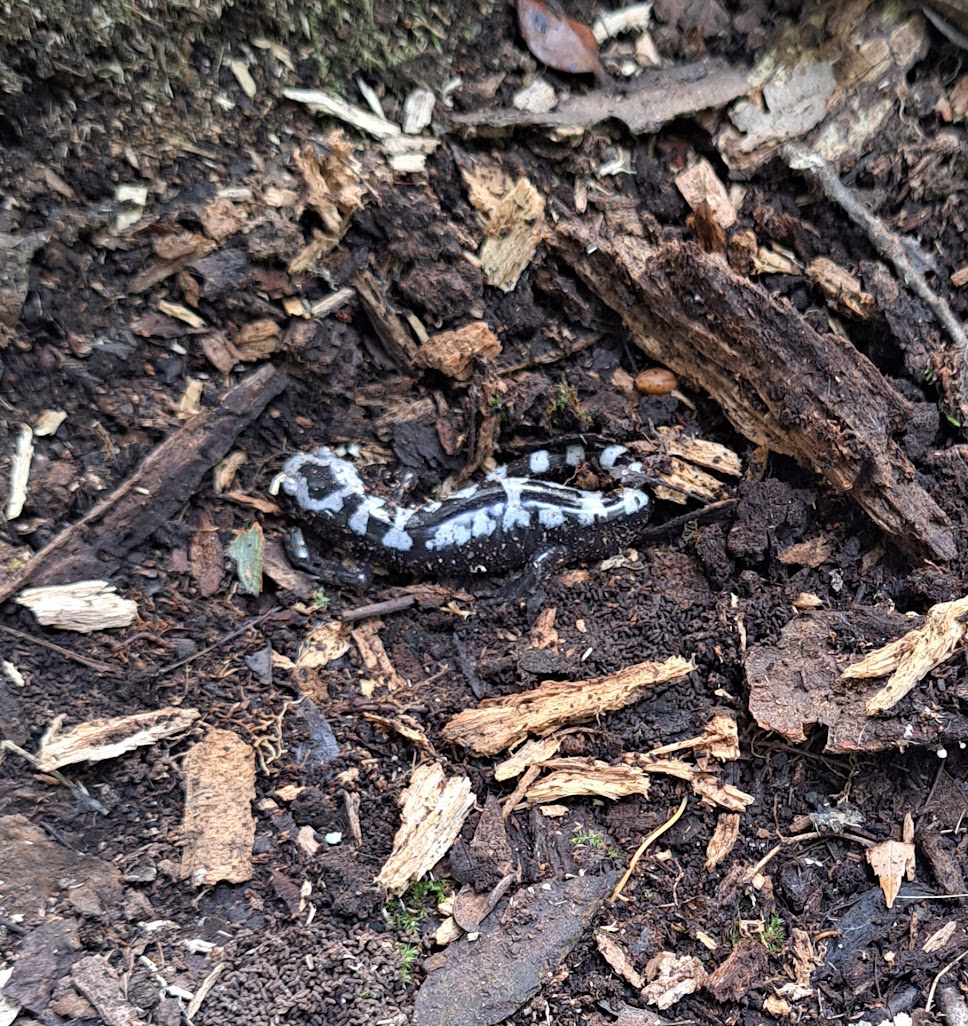 Fall is also the time to look for marbled salamanders. Although typically called “vernal pools,” some of these seasonal pools fill up with water in the fall when marbled salamanders (Ambystoma opacum, Special Concern) lay their eggs. This was a newly-confirmed location for them in state parks.