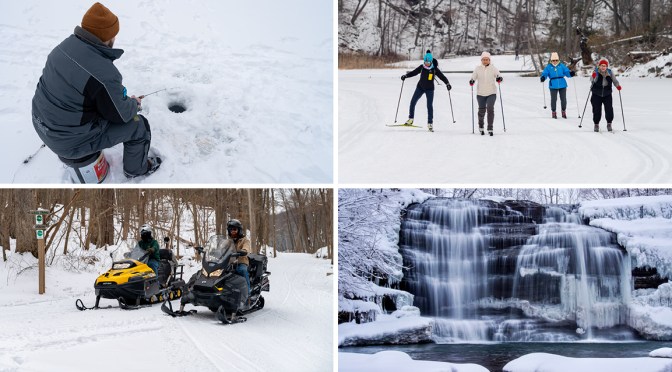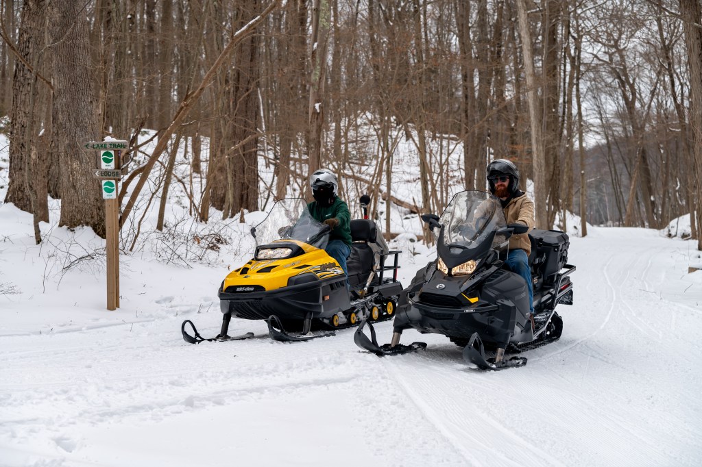 When the snow flies, what’s a boater or motorcyclist to do? In the words of State Parks Snowmobile Unit staffer Brian Landry, “You have two choices: sit home sad because it is cold, snowy, and dark early…OR get outside and find a way to enjoy all that.”